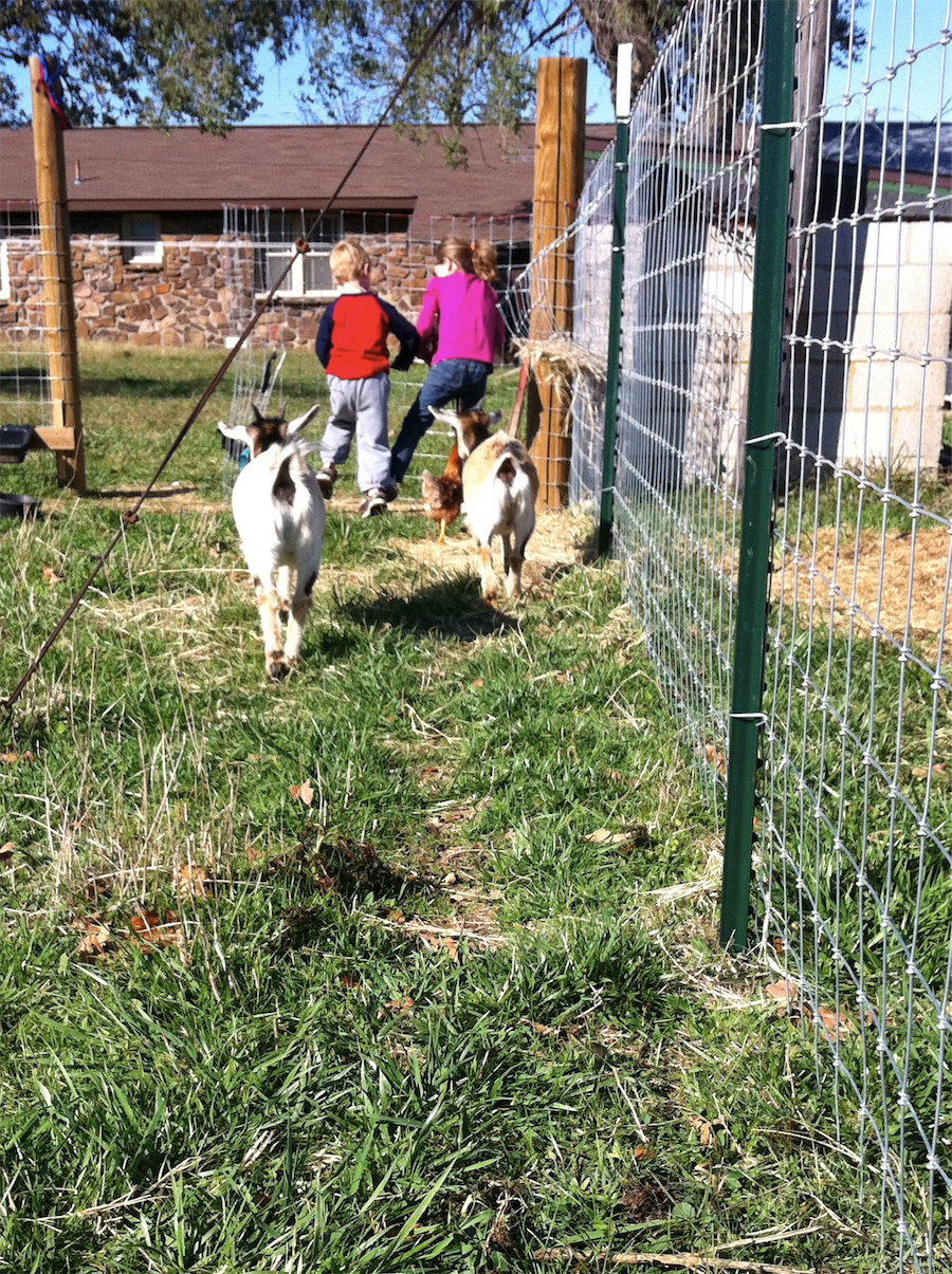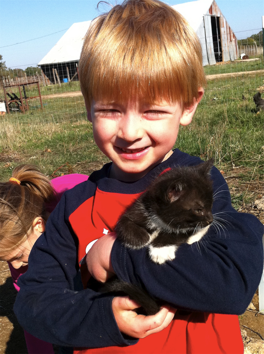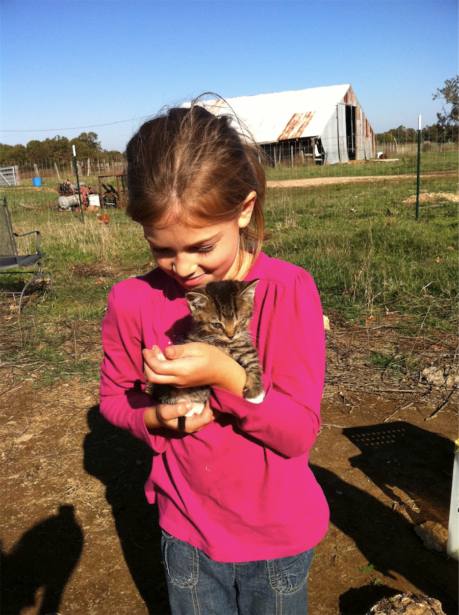 We really are enjoying being out here in the country. The kids have days like yesterday when they play outside almost all day, only coming in for naps and meals. Will and Elise especially have been enjoying making up elaborate stories while carting around the kittens. And never far away are our two little goats and flock of chickens.