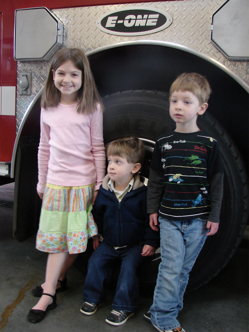 And so those were the highlights of our day. Sure there were fights and tears and complaints. But somehow I think that these wonderfully fun moments will be the ones I remember most. (The picture, by the way, is my three kids at the fire station tour we did last week.)